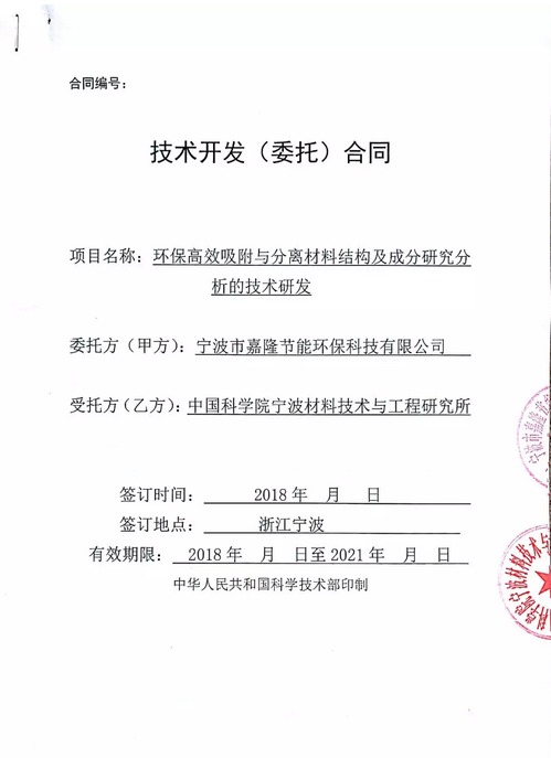 寧波市嘉隆節(jié)能環(huán)??萍加邢薰?以下簡(jiǎn)稱(chēng)“公司”)于近日與中國(guó)科學(xué)院寧波材料技術(shù)與工程研究所簽署了《環(huán)保高效吸附與分離材料結(jié)構(gòu)及成分研究分析的技術(shù)研發(fā)》。合同簽署后公司與中科院進(jìn)行了深入的溝通,啟動(dòng)了相關(guān)項(xiàng)目的科研工作,現(xiàn)將合作環(huán)保高效吸附與分離材料結(jié)構(gòu)及成分研究分析的技術(shù)研發(fā)項(xiàng)目的相關(guān)事宜公告如下: